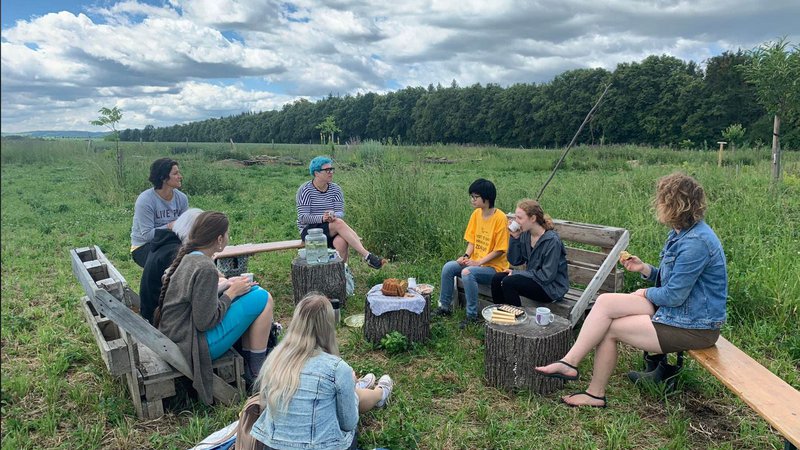 V úterý 21. 6. 2022 jsme s žákyněmi 3. ročníku oboru Design hraček a herních předmětů podnikly cestu do "Lučního sadu". V rámci spolupráce s neziskovkou Kapradí vytváříme tzv. Půdní stezku. Pro nasátí atmosféry místa a pochopení smyslu tohoto projektu, jsme se vydaly na cestu do Sadu. Uvítala nás Kateřina Rybářová Vavrečková a Lenka Pietraszková. Čekalo na nás sladké pohoštění a káva. Seděli jsme uprostřed divoké zahrady a povídaly si o jejím vzniku, jak komunitní sad funguje a co se od Půdní stezky očekává. Probraly jsme již vzniklé návrhy jednotlivých stanovišť a naplánovaly další postup práce.