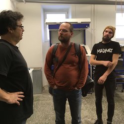Velkým přínosem k dalšímu kreativnímu rozvoji našich žáků dozajista bylo zhlédnutí autorských prací a jejich originálních instalací v prostoru školy. Prohlédli jsme si již zhodnocené práce na výstavě, mohli jsme vidět studenty a jejich pedagogy přímo při práci na instalaci, a dokonce jsme nahlédli i do ateliérů, ve kterých se stále pracovalo. Naši žáci tak měli jedinečnou možnost konzultovat či se nezávazně informovat přímo u pedagogů nebo studentů. Během dne jsme také absolvovali komentovanou prohlídku v grafické a sítotiskové dílně.
