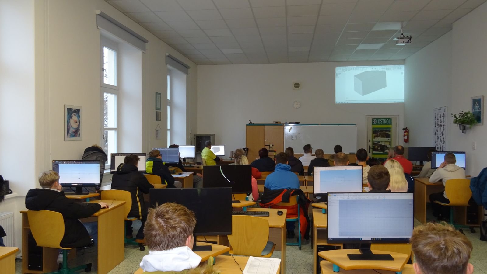 Ve čtvrtek 27. listopadu 2025 se na naší škole uskutečnil den otevřených dveří, během něhož jsme zájemcům o studium i jejich rodičům představili jednotlivé studijní obory. Uchazeči získali důležité informace o odborných i všeobecně vzdělávacích předmětech, mohli si zblízka prohlédnout vybavení učeben, vyzkoušet si 3D modelování a popovídat si s učiteli i žáky maturitních ročníků, kteří prezentovali své samostatné projekty.
