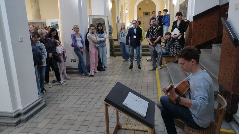 Ve čtvrtek 18. září 2025 se ve vestibulu školy uskutečnila minivernisáž, na níž žáci třetího ročníku uměleckých oborů představili kresby a malby vzniklé během týdenního plenéru ve Staré Vsi u Rýmařova.