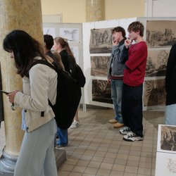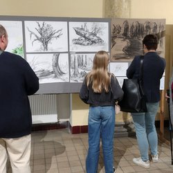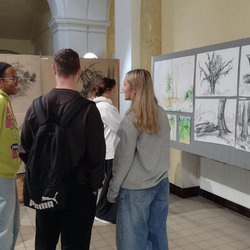 Ve čtvrtek 18. září 2025 se ve vestibulu školy uskutečnila minivernisáž, na níž žáci třetího ročníku uměleckých oborů představili kresby a malby vzniklé během týdenního plenéru ve Staré Vsi u Rýmařova.