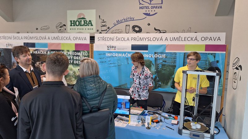 Ve dnech 8. a 9. října 2025 proběhl v opavské víceúčelové hale Veletrh povolání a naše škola se opět aktivně účastnila této zajímavé akce pro uchazeče o středoškolské studium. V technické části našeho stánku si zájemci mohli vyzkoušet 2D kreslení v aplikaci AutoCAD, prohlédnout si ukázky 3D modelování a obrábění v aplikaci Autodesk Inventor, seznámit se s principem tisku na 3D tiskárně a seznámit se s náplní studia oborů strojírenství a informační technologie