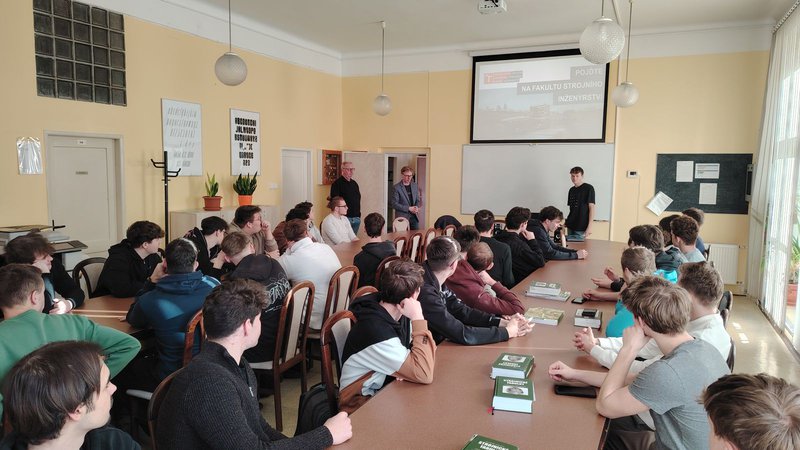 Žáci čtvrtého ročníku měli 19.1.2026 jedinečnou možnost zúčastnit se prezentace, kterou si připravil náš bývalý žák Václav Klapetek, nyní student prvního ročníku VÚT Brno. Náš absolvent představil průběh prvního roku studia na Fakultě strojního inženýrství. Seznámil žáky se studijními programy i oborem, který sám studuje a kromě informací o samotné výuce zmínil i možnosti, které se studentům univerzity nabízejí i v jejich volném čase. V prezentaci vycházel ze svého vlastního rozvrhu i ze zkušeností, které získal během absolvování jednotlivých předmětů v prvním semestru.