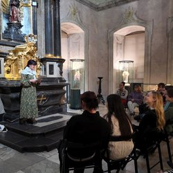 Žáci 3. a 4. ročníku oboru Design hraček se zúčastnili vernisáže výstavy HRAVĚK v kapli Moravského zemského muzea. Výstava probíhá od 3. 12. 2025 do 29. 3. 2026 a doplňují ji herní prvky v prvním patře herny, využívané při animačních programech muzea.
